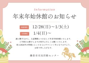 誠に勝手ながら12月28日(日)~1月3日(土)まで休館となります。この期間はイ […]