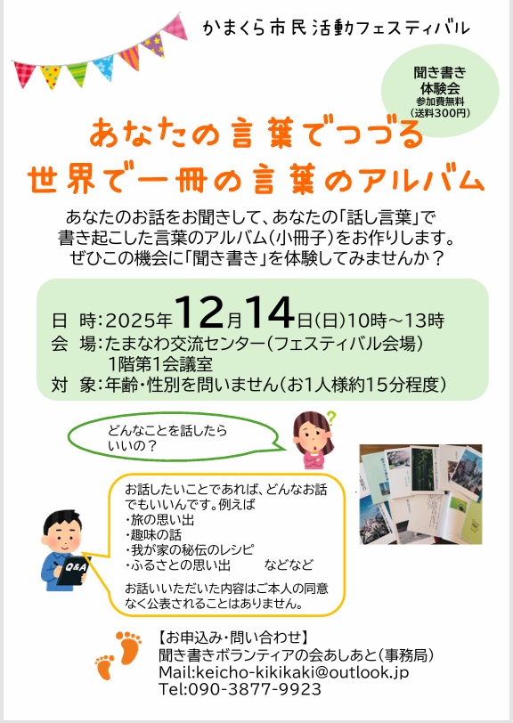 日時2025年12月14日(日)10:00 ~ 13:00 (かまくら市民活動フェスティバル)