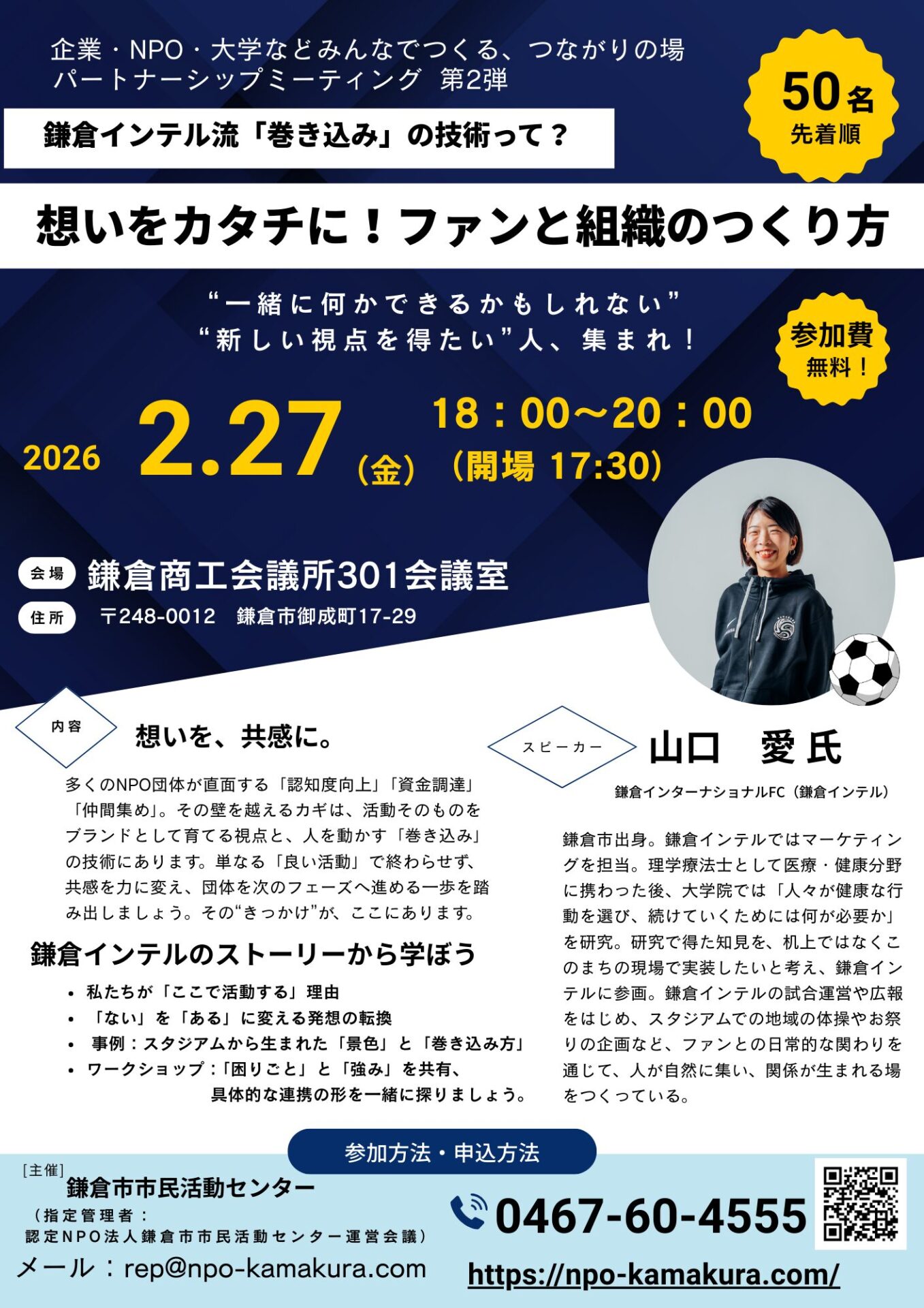 ※パートナーシップミーティングは、様々な分野での取組内容等を紹介し合い、交流することで、異なる分野の団体同士の関係性を築く場です。企業・NPO・大学などの多様な主体の出会いの場、新しいつながり、きっかけづくりから始めましょう。