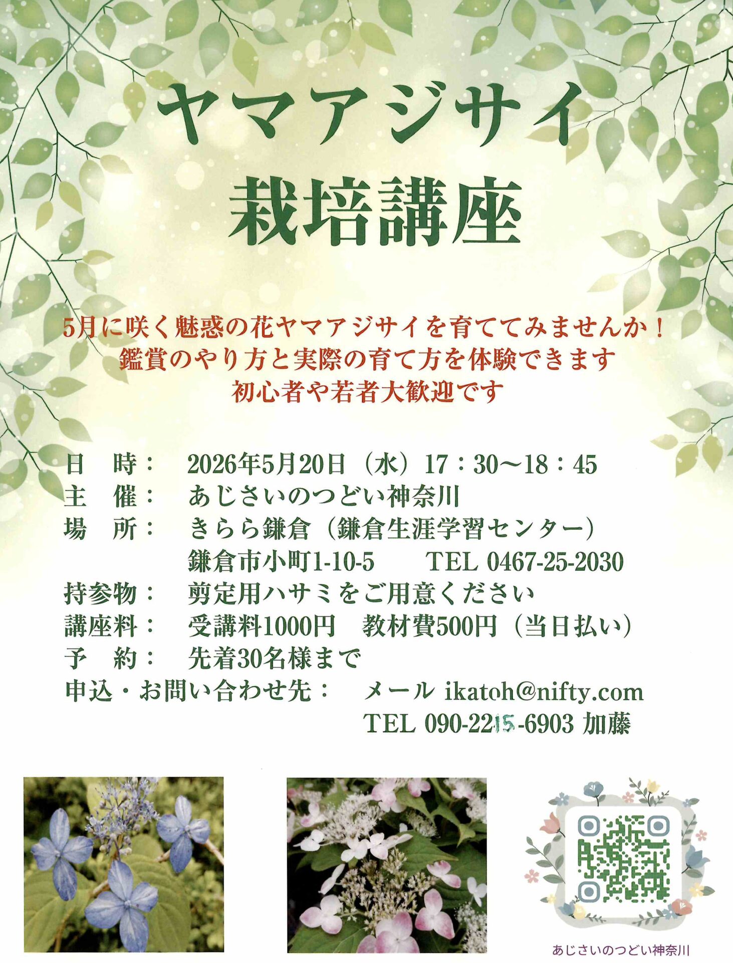 5月に咲く魅惑の花ヤマアジサイを育ててみませんか!鑑賞のやり方と実際の育て方を体験できます。初心者や若者大歓迎です。